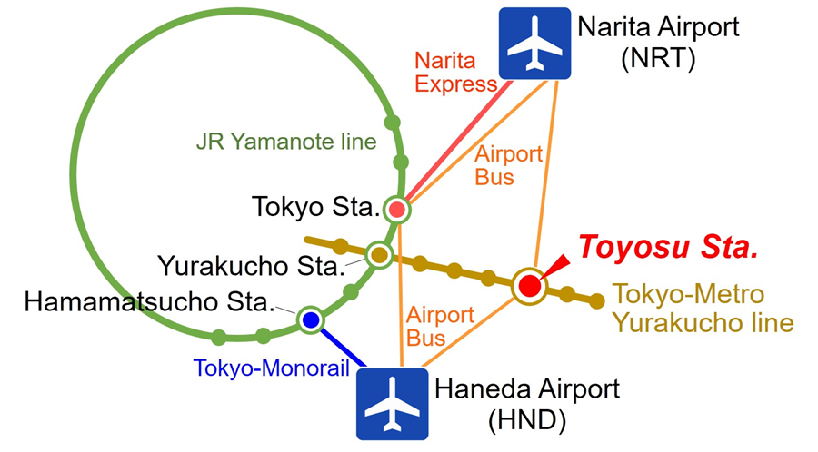 SHOWA Medical University Koto Toyosu Hospital is easily accessible from airports and major cities.